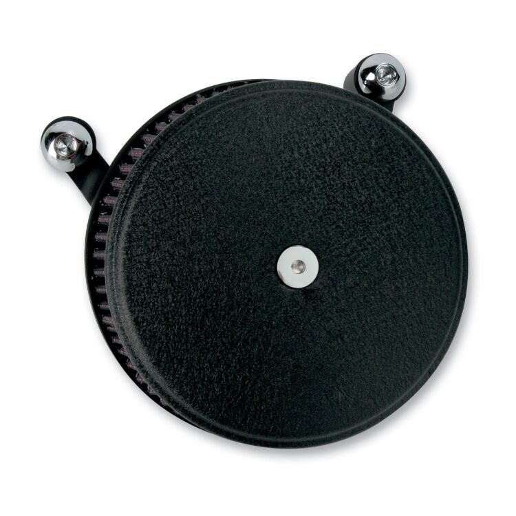 This Arlen Ness Big Sucker Kit in a show Chrome finish with a Smooth steel cover has an all-in-one backing plate with carb support and built-in breather tunnels. The patented Big Sucker technology has tunnels that exit at the mouth of the carb or throttle body to create a virtually closed-loop system for the best performance possible. The Smooth Chrome Finish Stage I kit includes a black aluminum backing plate and Team Ness round tapered high flow synthetic air filter.