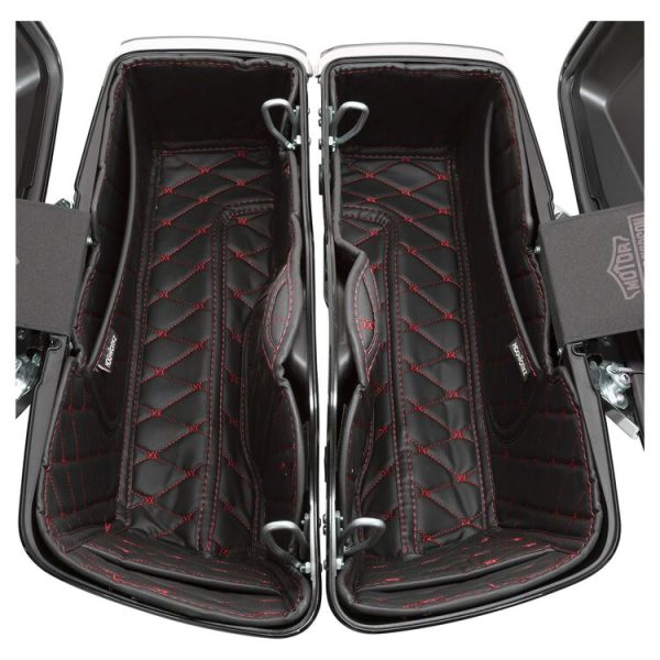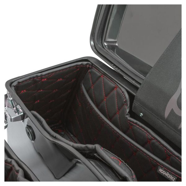 Cruise in style all while protecting your personal belongings from scuffs and scratches with these custom embroidered HogWorkz form fitted standard saddlebag liners. These liners are made with high quality synthetic leather and feature three stash pockets for your items.