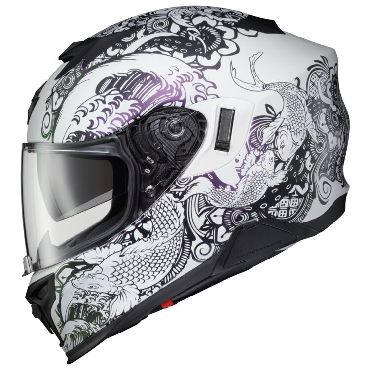 Scorpion EXO-T520 Nama-Sushi Full Face Helmet is a perfect helmet for commuter and long rides with its’ lightweight with a low-profile design. An aerodynamic shape and AirFit system assist reduce the drag and lift while riding. Constructed from EXO-T520’s dual homologated Advanced Polycarbonate shell and Multi-Density EPS provide the energy displacement and protection you need. Designed specifically to integrate with the EXO-COM Bluetooth Communicator Kit while the large speaker pockets also make it compatible with many other communication systems. The EXO-T520’s Anti-Fog coated Everclear outer face shield provides shatter and scratch resistance while, internally, the integrated SpeedView Sun Visor will help block the sun when you need it. 6 adjustable intake vents and integrated rear exhaust vents align perfectly with internal channels, keeping you cool when temperatures rise, and warm when temperatures drop.