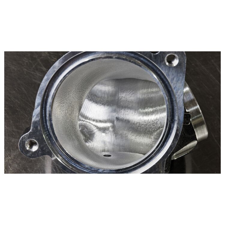 Knowing polished porting has little impact on the intake side, uniformly spaced and shaped texture is leveraged to encourage fuel dissipation, but also superior atomization of the fuel air mixture. Porting is done using a 5-Axis CNC for the ultimate consistent shape and flow characteristics.