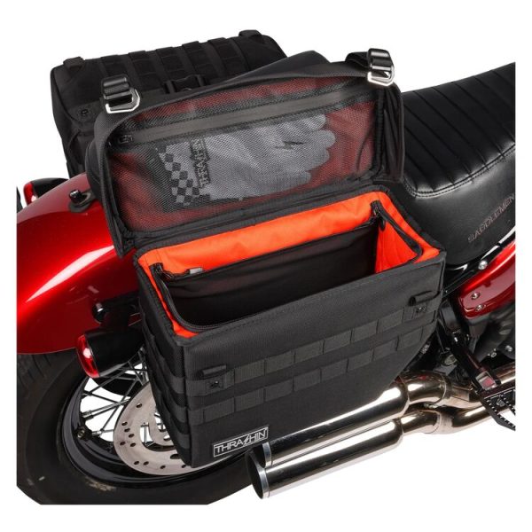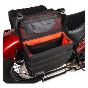 The Expedition Saddlebags by Thrashin Supply Co are designed for any adventure. Crafted from robust ballistic nylon, they provide unrivaled durability and an “L” shaped one-piece backing for enhanced load support. With a 21-liter storage capacity, these saddlebags are adaptable to a wide variety of motorcycles. They feature mounting brackets for a snug fit between the strut and fender, ensuring compatibility with both fixed and detachable backrests.